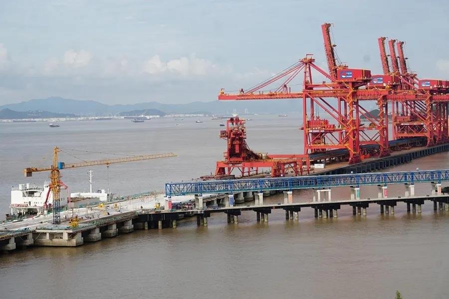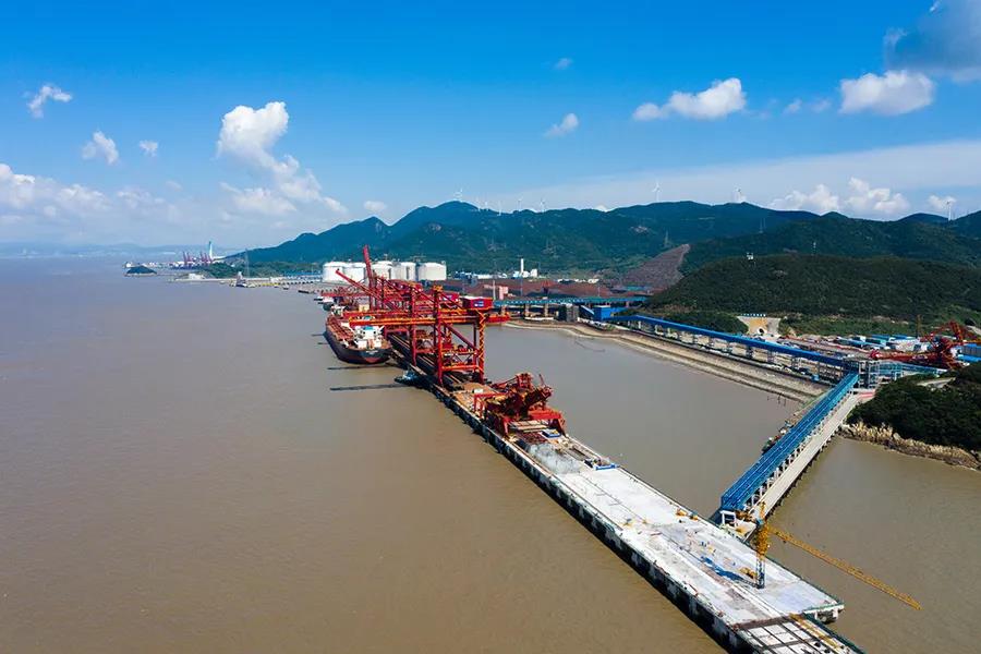 8月31日,随着最后一块面层混凝土浇筑完成,宁波舟山港穿山港区中宅矿石码头二期30万吨级卸船泊位主体结构顺利完工。