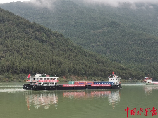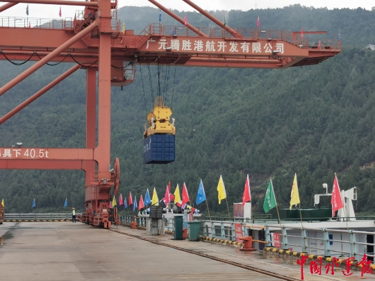 嘉陵江广元至重庆集装箱班轮由广元交投集团与重庆港务物流集团共同组织实施,“ 腾胜2号 ”集装箱船首航共装载32个标箱700吨甘肃明珠矿业公司的重晶石粉,经重庆果园港到辽宁营口港,最终运至辽宁省盘锦市。