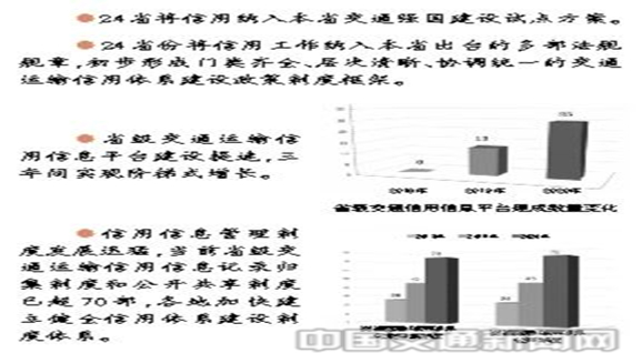 ◆100%省份开发了各种形式的信用信息管理系统和本省“信用交通”网站,且有78%通过两期以上完善升级为信用信息共享平台;