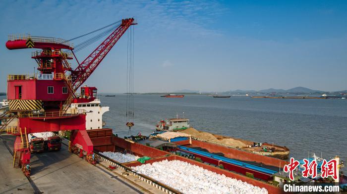 中新网合肥11月2日电 (记者 张俊)近日,作为安徽境内长江北唯一的万吨级深水港,安徽省马鞍山市的郑蒲港迎来货运高峰期。前三季度,郑蒲港完成散杂货吞吐量60.84万吨,同比增长766.67%,完成集装箱吞吐量10292标箱,预计全年集装箱吞吐量达到3万标箱。
