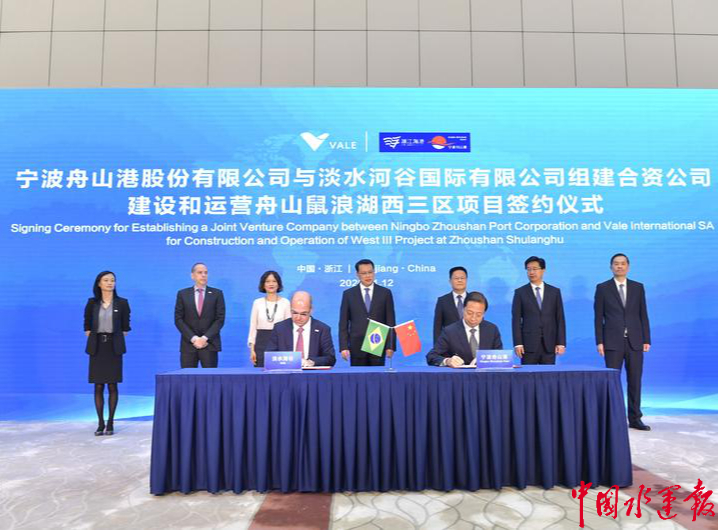 11月12日上午,宁波舟山港股份有限公司与淡水河谷国际有限公司组建合资公司建设和运营舟山鼠浪湖西三区项目签约仪式在杭州举行。