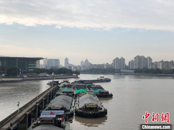 姚江船闸等候过闸的货船。林波 摄