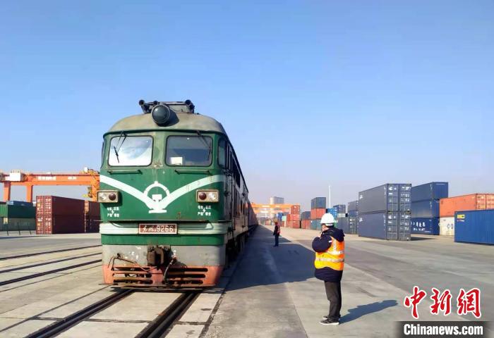 据介绍,这是赣州国际陆港2021年开出的首趟中欧班列。李心柯 摄