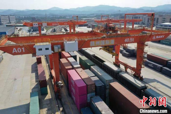自2016年5月建成并投入使用以来,赣州国际港已相继打通了沿边四大国门和沿海港口群,常态化开行19条中欧(亚)班列、4条铁海联运班列和19条内贸班列线路,运行线路辐射全球50%以上面积。李心柯 摄
