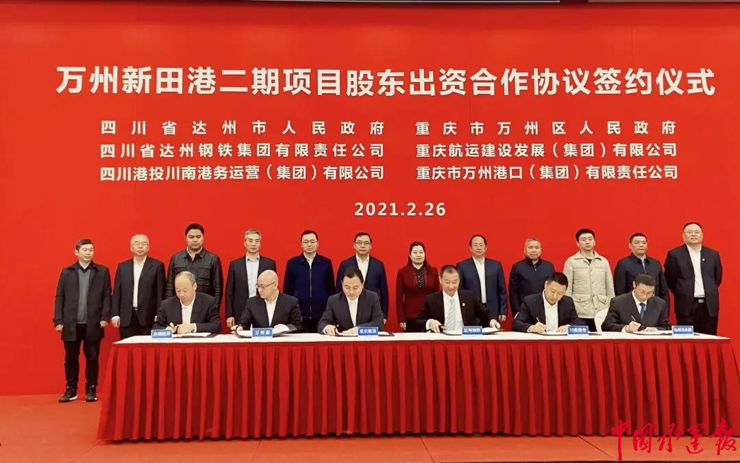 2月26日,四川港投川南港务运营(集团)有限公司、重庆航运建设发展(集团)有限公司、四川省达州钢铁集团有限责任公司、重庆市万州港口(集团)有限责任公司、重庆万州经济技术开发(集团)有限公司、达州秦巴无水港投资建设有限公司共同签署了万州新田港二期项目股东出资合作协议,该项目总投资16.98亿元,拟建设4个5000吨级散货泊位及配套设施,设计年通过能力为1477万吨。