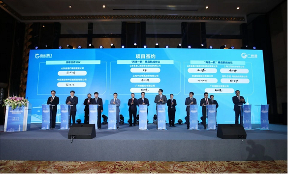 这样的共赢合作注定成果丰硕。会上,山东港口及山东港口青岛港、日照港、烟台港、渤海湾港、贸易集团、物流集团,联手广州港股份有限公司,与多家企业签署了多项合作协议。这既是服务“大循环、双循环”新发展格局的创新合作,也是塑造“互为目的地港”、建立“两港一航”式全程物流链条的全新合作模式探索,对于未来港口合作有重要示范引领作用。而随着未来合作的不断深化,“共建生活消费品分拨中心,促进南北方消费品物资往来”、“布局冷链物流南北分拨全链条格局”、“构建商品车南北运输海上大通道”、“打造南北物资交流循环布局”等构想将成为促进我国南北方内循环的有力载体。