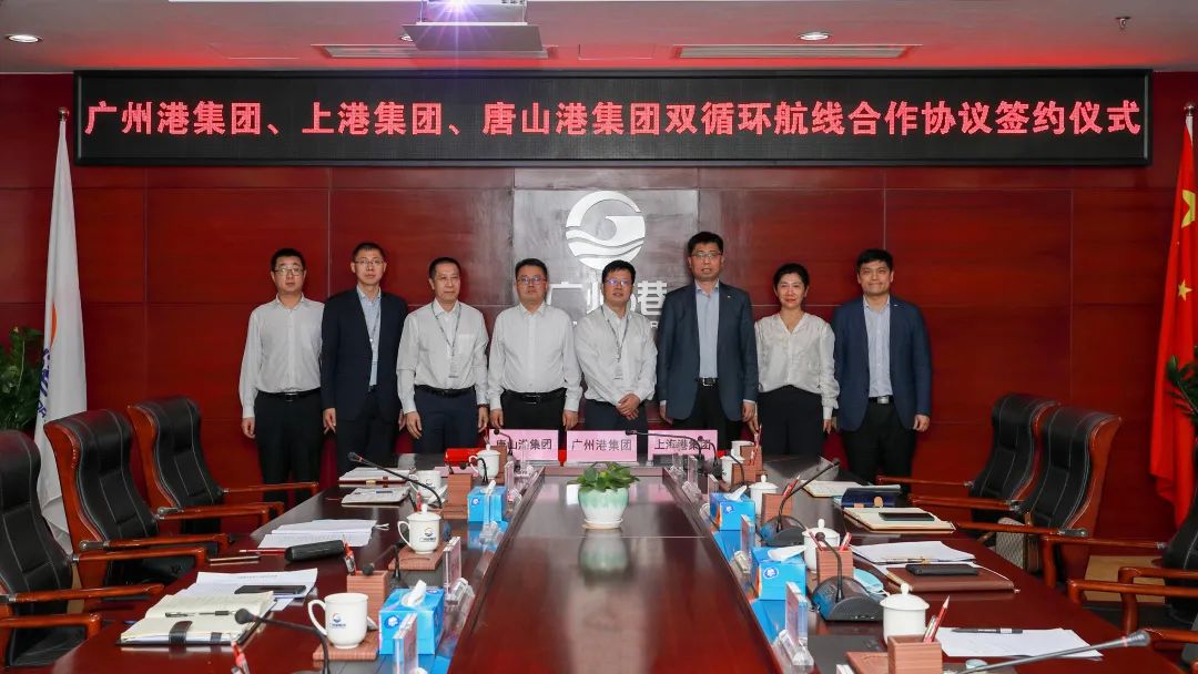 4月25日,广州港集团有限公司与上海国际港务(集团)股份有限公司、唐山港集团股份有限公司在港口中心签署三港双循环航线合作协议。上海国际港务(集团)股份有限公司副总裁王海建,唐山港集团股份有限公司副总经理李建振,广州港集团有限公司副总经理宋小明等领导出席和见证签约。