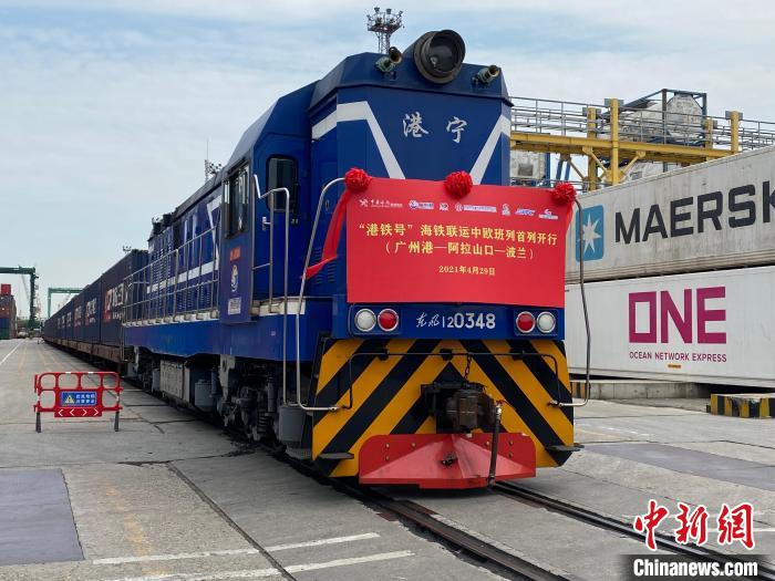 中新网广州4月29日电 (蔡敏婕 邹井棋)29日下午,伴随着长鸣的汽笛声,广州港、广物集团、广铁集团“港铁号”海铁联运中欧班列(广州港-阿拉山口-波兰)从广州港下属集司码头缓缓驶出,由阿拉山口出境,将于15天后抵达波兰最大的铁路转运港马拉舍维奇。