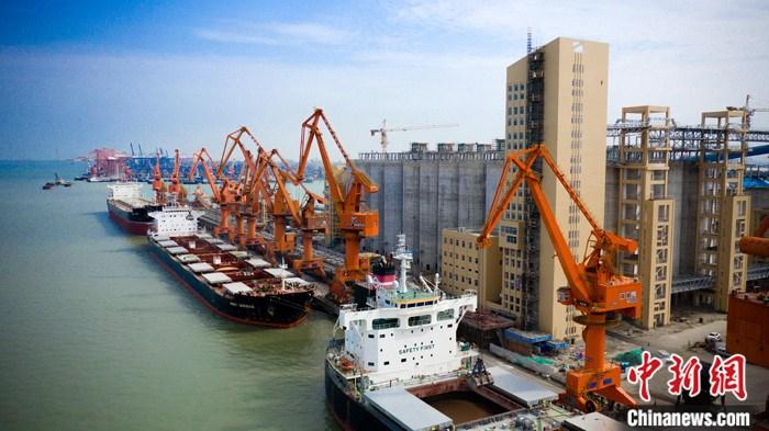 资料图为4月29日,航拍广州南沙粮食码头。 中新社发 广州港集团 供图
