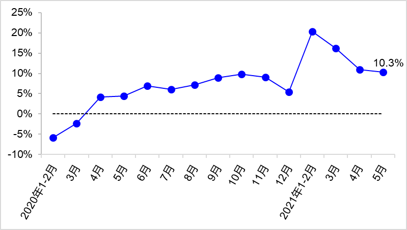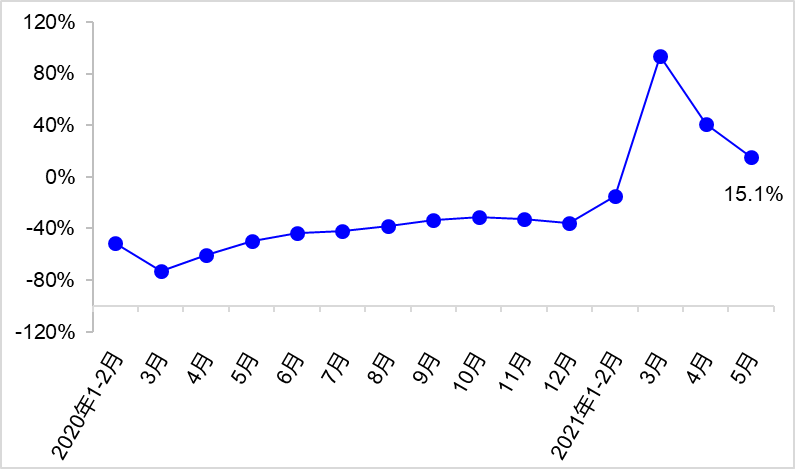 5月,交通运输经济延续一季度以来的运行态势,与2020年同期相比,投资规模持续高位运行,运输量、港口货物吞吐量增长较快。与2019年同期相比,除客运量仍在恢复外,其余指标均实现平稳较快增长。