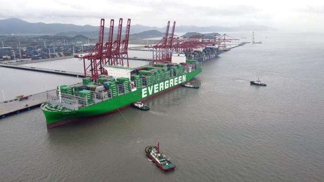 宁波舟山港是年货物吞吐量全球第一大港,是各类最大船的“热门打卡地”。截至目前,宁波舟山港已累计接卸全球最大40万吨矿船超200艘次,曾多次接卸全球最大油轮“泰欧”轮,并于去年接卸“前任”最大集装箱船“现代阿尔赫西拉斯”轮。此次挂靠的“长范”轮,船长400米,船宽62米,最大载箱量达23992标准箱,相较“现代阿尔赫西拉斯”轮多出28标准箱,刷新宁波舟山港挂靠纪录,计划在梅山港区完成3600标准箱的装船任务。
