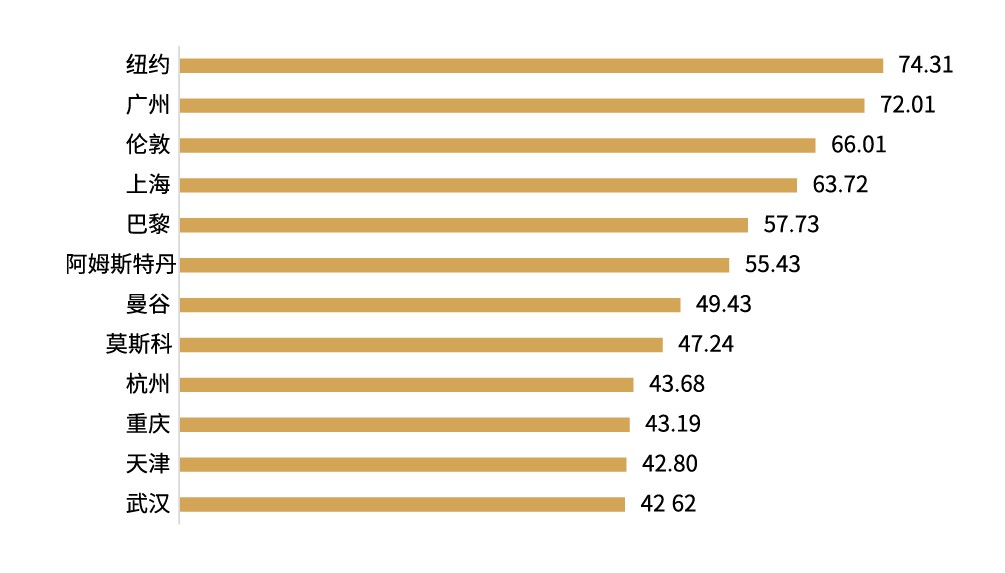 指数监测结果显示,国外城市整体处于领先地位,纽约、伦敦、巴黎等城市的游船在品牌形象、市场开放程度等方面表现亮眼,国内城市中广州、上海跻身全球前五,杭州、重庆、天津、武汉等城市潜力大。