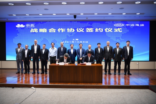 10月8日下午,中国远洋海运集团有限公司(简称“中远海运”)与中国中化控股有限责任公司(简称“中国中化”)在沪签署战略合作协议。中国中化董事长、党组书记宁高宁,董事、总经理、党组副书记李凡荣;中远海运董事长、党组书记许立荣,董事、总经理、党组副书记付刚峰出席并见证签约。中国中化副总经理、党组成员阳世昊,中远海运副总经理、党组成员黄小文分别代表双方签约。