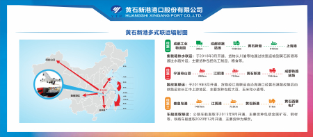 在加快港口建设的同时,黄石新港积极响应交通运输部、国家发展改革委的号召推动多式联运发展,并于2017年成功获批国家多式联运示范工程项目。为推动多式联运示范项目落地,在黄石市委市政府的直接领导下,黄石新港先后开通了到韩国的外轮直航航线,到上海洋山港的江海直达固定始发班轮,到上海外高桥港的长江内支线固定始发班轮以及到成都、重庆、西安等地的铁路班列,黄石新港腹地范围不断扩大,逐步由节点向枢纽转型。