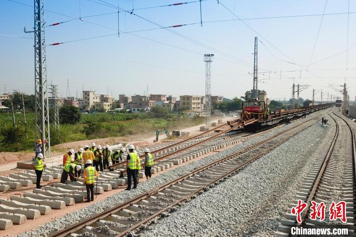 截至目前,南沙港铁路全线铺轨已完成73%,其中江门雅瑶至中山小榄段双线46公里长轨已铺设完毕,中山小榄至广州南沙港站长轨换铺正紧张进行,有望于11月底完成正线长轨铺设任务。施工方后续还将进行钢轨焊接、应力放散、轨道精调和轨道整理等工序,确保年底达到货运开通条件。