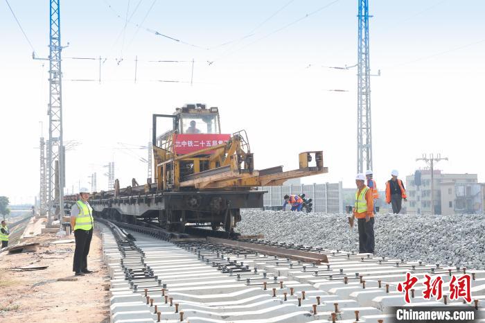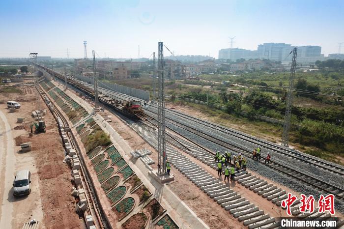 中新网广州11月19日电 (郭军 邓联旭 黄诗伟)广州南沙港铁路施工建设取得新突破。11月19日,记者从中铁二十五局获悉,南沙港铁路已铺设长轨135公里,铺轨任务完成超过七成,这标志着该项目施工建设进入最后冲刺阶段,为今年年底货运达到开通条件奠定坚实基础。
