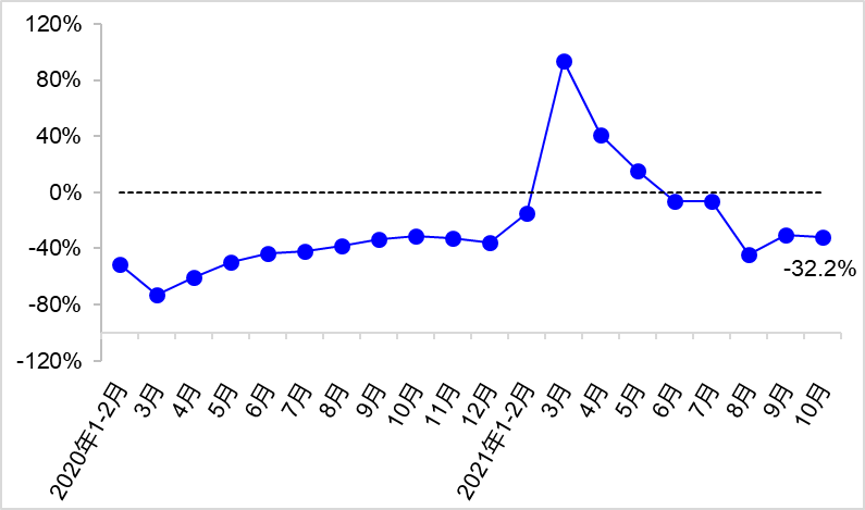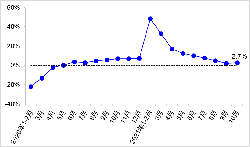 10月,交通运输经济总体延续平稳运行态势,交通投资、货运量、港口货物吞吐量等主要指标两年平均增速较9月略有回升。受疫情多点散发影响,客运量持续低位运行。