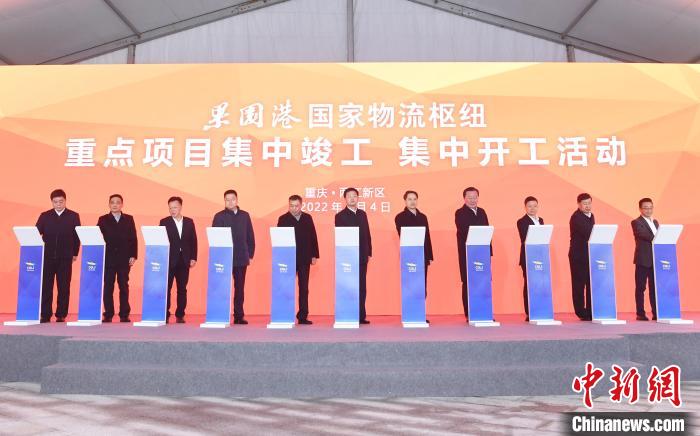 中新网重庆1月4日电 (记者 刘贤)重庆两江新区4日在当地举行果园港国家物流枢纽重点项目集中竣工、集中开工、集中签约活动。这一大批重大项目的竣工能为重庆及中国西部地区的货物出入境提供就近、高效的口岸服务,长江中上游部分货物也能以“水铁无缝联运”的方式经果园港口岸作业区转运欧洲和东盟国家。