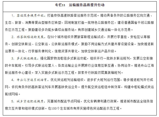 运输服务更加高效。运输服务质量稳步提升,客运“一站式”、货运“一单制”服务更加普及,定制化、个性化、专业化运输服务产品更加丰富,城市交通拥堵和“停车难”问题持续缓解,农村和边境地区运输服务更有保障,具备条件的建制村实现快递服务全覆盖。面向全球的国际运输服务网络更加完善,中欧班列发展质量稳步提高。