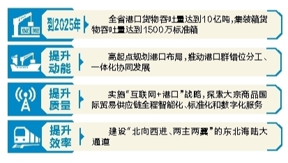 在提升港口发展效率方面,《方案》提出,要建设“北向西进、两主两翼”的东北海陆大通道。打造以大连港、沈阳铁路枢纽为核心枢纽,海域辐射日韩和东南亚,陆域经沈阳至满洲里联通俄罗斯和欧洲国家的北向主轴通道。建设以大连港、沈阳铁路枢纽为核心枢纽,海域辐射日韩,陆域经沈阳至霍尔果斯联通中亚和欧洲国家的西进主轴通道。拓展以大连港、丹东港为重要支撑,海域辐射东南沿海,陆域经长吉图至绥芬河联通俄罗斯的东翼通道。畅通以锦州港、盘锦港、葫芦岛港为重要支撑,海域辐射东南沿海,陆域经锡林郭勒珠恩嘎达布其联通蒙古国和欧洲国家的西翼通道。同时,要完善港口集疏运体系,推进港口与其他运输方式统一规划、协同管理,推动重要港区疏港铁路覆盖,重点建设辽宁自贸试验区营口片区至鲅鱼圈疏港铁路工程,进一步优化港口腹地枢纽场站布局。(记者 孙大卫)