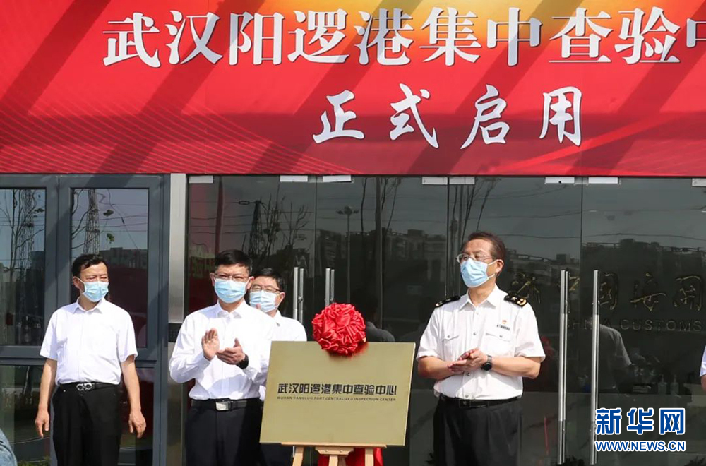 图为4月27日,湖北港口集团所属武汉阳逻港集中查验中心正式启用。集中查验中心启用后,可满足阳逻港每年800万至1000万标箱作业检验需求,查验能力相比过去提升了数倍。新华网发
