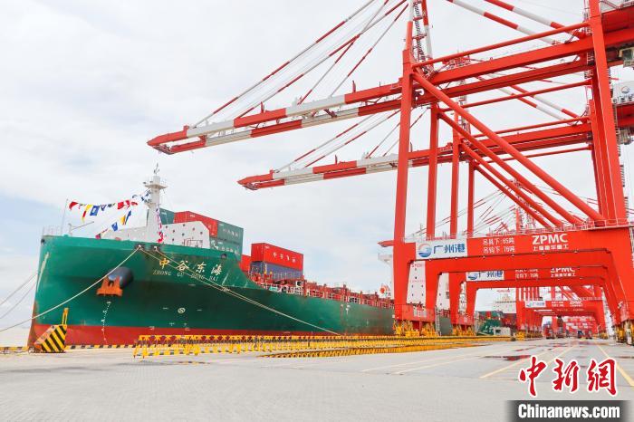 中新网广州6月17日电 (蔡敏婕 谷俐欣)17日,“中谷东海”轮挂靠广州港南沙集装箱三期码头,标志着南沙港区中谷海运泰国越南线CVT的正式首航,进一步满足企业出运泰国及越南的需求。截至当天,广州港开通外贸航线已达150条。