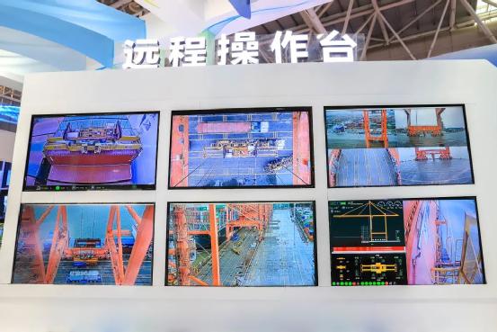 本次福建港口集团展馆设置了远程操作台,通过屏幕实时直播厦门港海润集装箱码头智能化作业的实况。海润集装箱码头全智能化改造项目是集团积极响应国家交通强国战略、打造智慧码头的主要成果之一。
