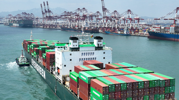 在繁忙的山东港口青岛港,几乎每天都有来往于金砖国家港口的货轮在此装卸,平均每两分钟就会有一单金砖国家货物在这里卸下或装运发往海外港口。青岛海关数据显示,今年1月至5月,青岛直达金砖国家的航线共完成箱量83万标箱,同比增长12%,其中出口量增长26.1%。新华社记者李紫恒摄