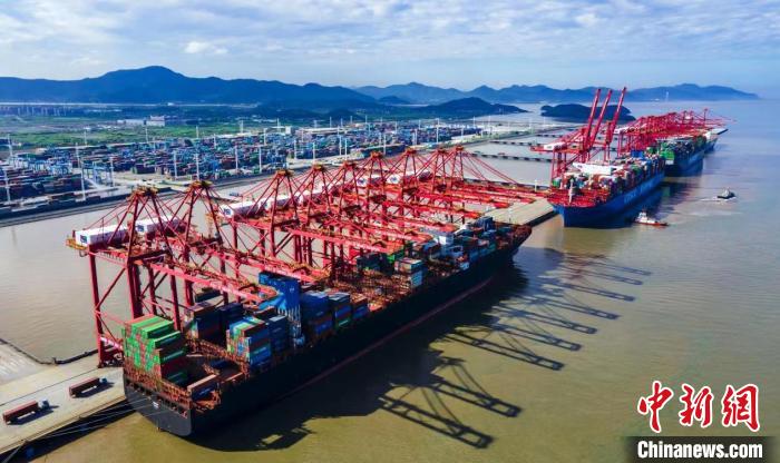 中新网宁波8月4日电(奚金燕 蒋璐闻 景鹏飞)4日记者获悉,7月份,宁波舟山港预计完成集装箱吞吐量超320万标准箱,同比增长达25%,连续4个月突破300万标准箱,集装箱运输生产展现出强劲韧性与活力。