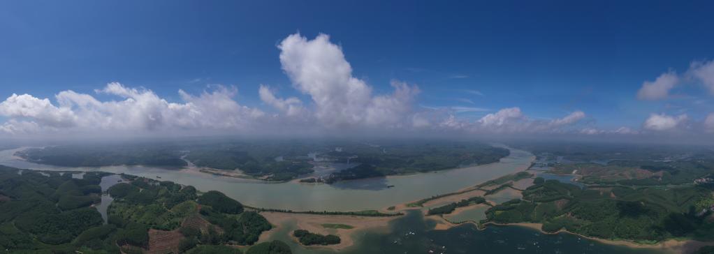 这是8月27日拍摄的平陆运河起点平塘江口附近水域(无人机全景照片)。新华社记者 曹祎铭摄