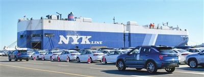 走进天津港环球滚装码头,25万平方米的堆场上准备装船的车辆依次排开。堆场西南角还矗立着我国北方最大的单体封闭式立体停车楼,停车楼可存放3500台商品车。今年以来,该码头月均汽车接卸量超过8万辆。