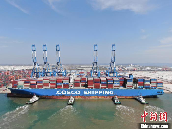 据悉,此次靠泊的“中远海运喜马拉雅”轮是该码头正式启用以来最大的集装箱船舶,它的载重吨154520吨,船长366米,船宽51.2米,最大装箱量14566TEU,于10月28日从新加坡开往钦州港。靠泊钦州自动化集装箱码头后装载的10886个集装箱将通过全自动化的机械有序完成装卸。