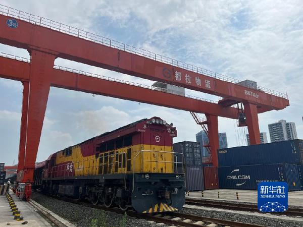 来源:新华网 贵州首列采用贵广铁海联运“一港通”快速通关模式的首发测试班列5月17日从贵阳国际陆港顺利开行,该批货物将经广州南沙港运往日本。