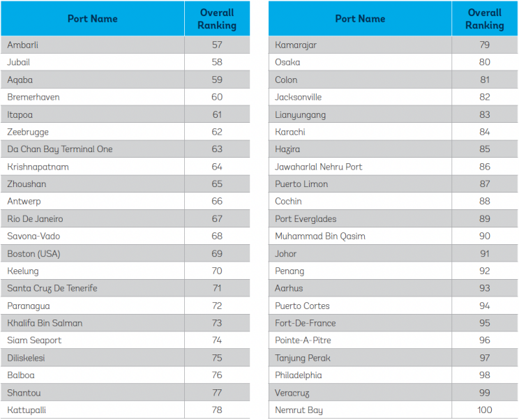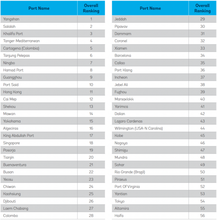 在东南亚地区,马来西亚的丹绒帕拉帕斯港今年升至第6位,越南蔡梅港排名第12位,新加坡港排名第18位。