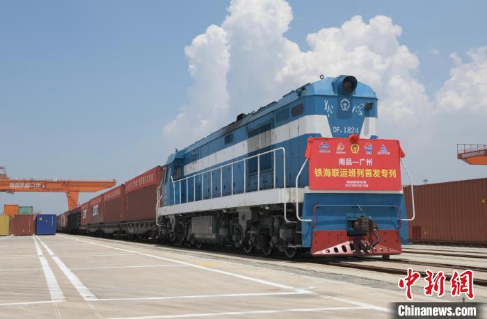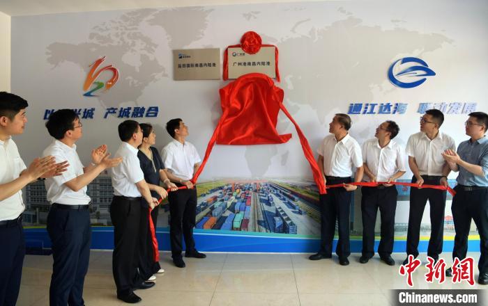 中新网南昌5月29日电(卢梦梦 李悭)29日上午,南昌国际陆港至广州港铁海联运班列首发暨广州港南昌内陆港揭牌仪式在南昌国际陆港举行,这标志着南昌国际陆港正式成为广州港的内陆港。