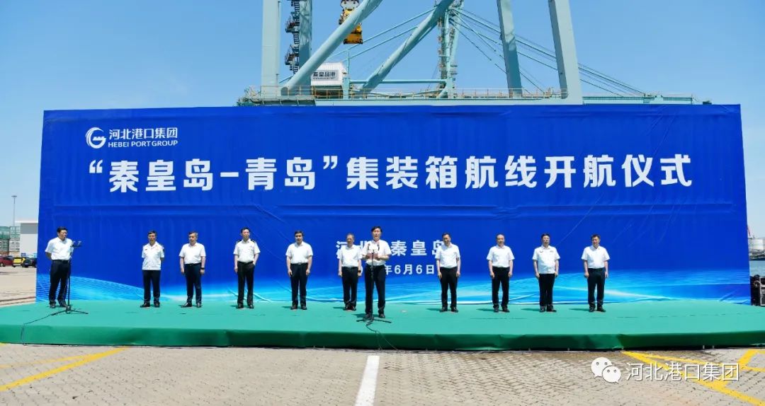 6月6日上午,“秦皇岛——青岛”集装箱航线开航仪式在河北港口集团秦皇岛港新港湾集装箱码头举行。河北港口集团党委书记、董事长曹子玉出席开航仪式并致辞,秦皇岛市长丁伟宣布开航。秦皇岛市委常委、常务副市长张福杰,秦皇岛市发改委、外事商务局、海洋渔业局,秦皇岛海关、秦皇岛海事局、秦皇岛边检站有关部门及山东港口青岛港集团、山东港口航运集团、国铁北京局等港口铁路相关负责人出席开航仪式。秦港股份、唐港集团、秦仁海运、合德海运相关负责人及近40家客户单位代表参加仪式。仪式由河北港口集团党委常委、副总经理宣国宝主持。