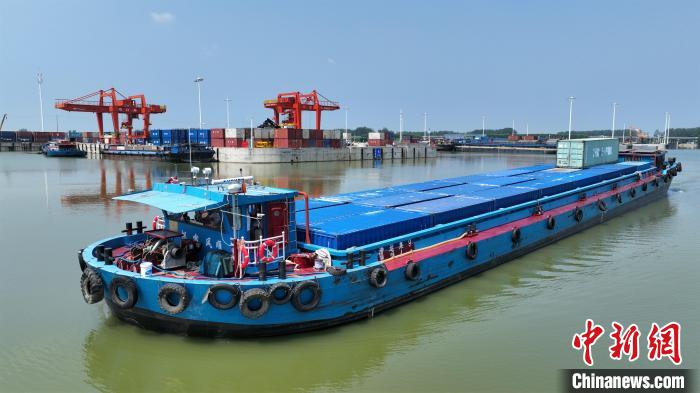 中新网周口6月26日电 (王宇 宋风)6月26日,河南省周口中心港至阜阳港、蚌埠港集装箱航线正式开通。同时,周口临港开发区管委会与安徽省港口运营集团有限公司签订合作协议,双方将在内外贸集装箱、件杂货、散货,以及铁水联运等进出口大物流等方面开展合作。
