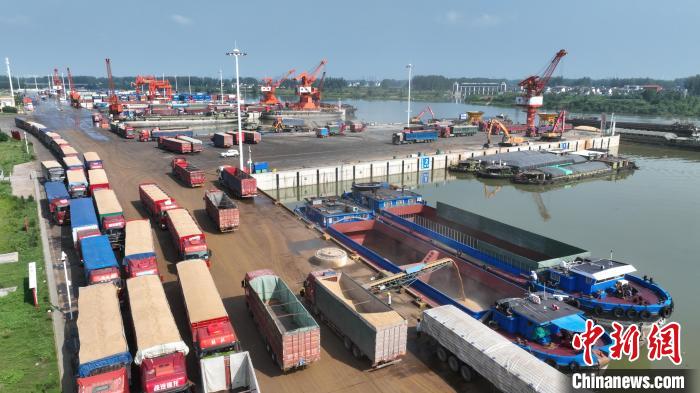 周口中心港内一派繁忙景象。(无人机照片) 赵磊 摄