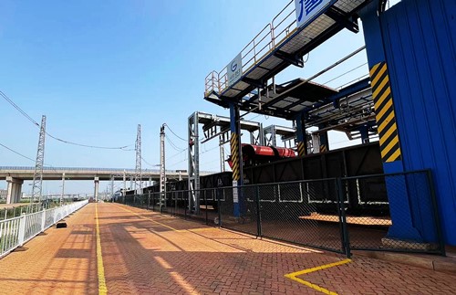 “系统首次采用永磁同步电机作为驱动系统,永磁直驱控制系统与传统控制系统相比,不仅节能环保,效率也提高了15%左右。”京唐港首钢码头有限公司装车部部长李健接受记者采访时表示,系统运行时,列车直接由电力机车牵引,在装车作业区下方设置一套可移动接触网,解决装车落料作业与接触网的交叉问题。装车完毕后,接触网自动恢复原位,实现电力机车直接到发,提高了作业效率。