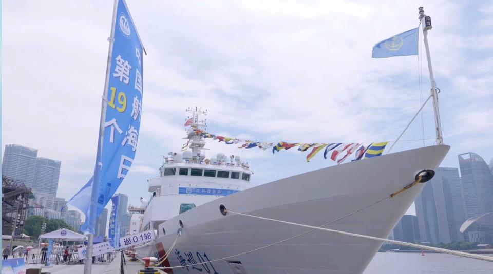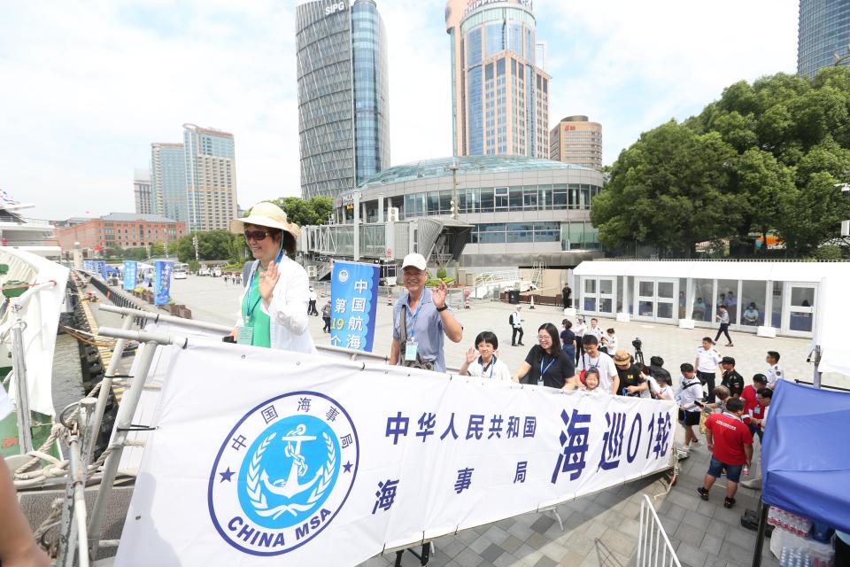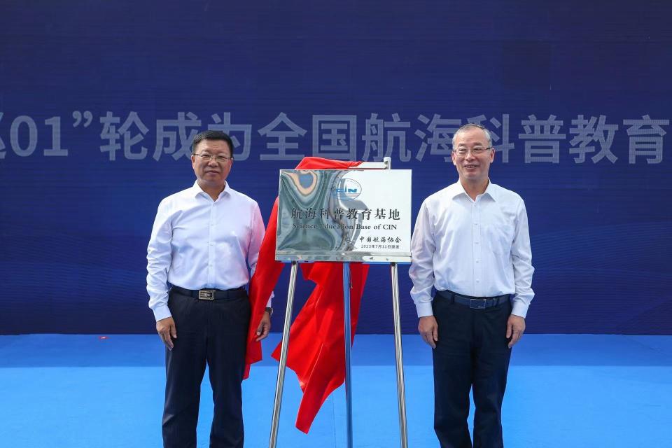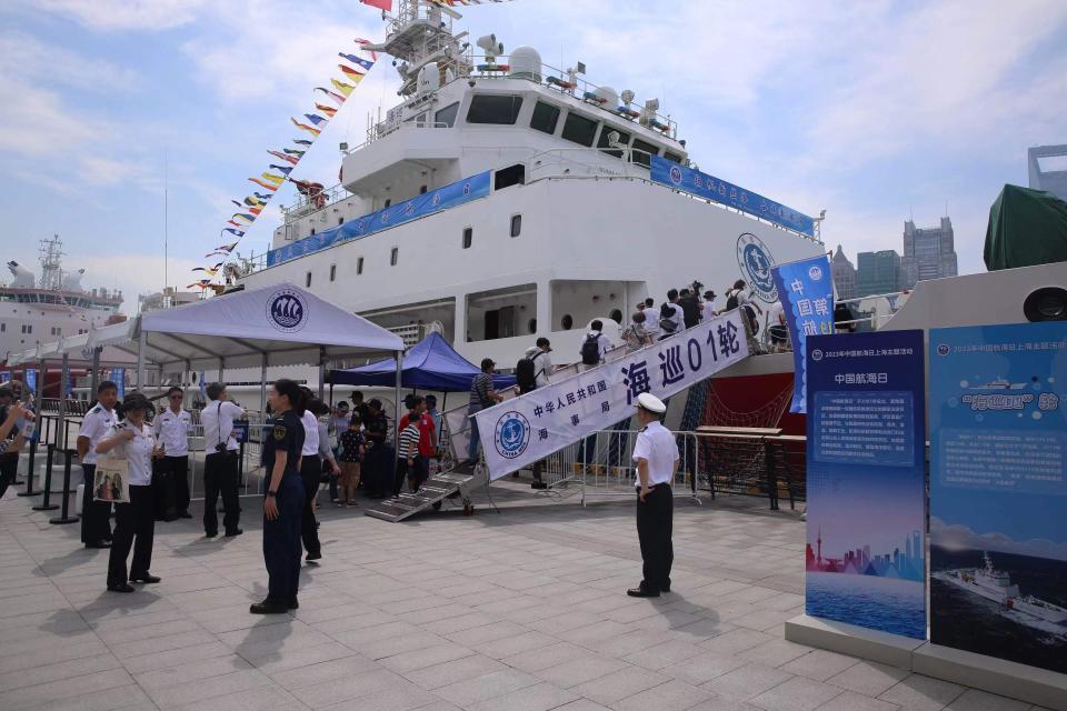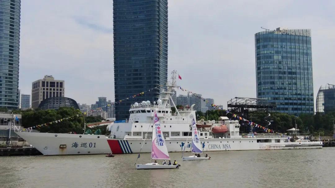 伴随着国旗冉冉升起,7月11日上午9时,2023年中国航海日上海主题活动在上海港国际客运中心码头启动。上海海事局“海巡01”轮成为全国航海科普教育基地正式揭牌,并应邀参加当日举行的“船艇开放”活动,供市民免费参观。上海海事局谢群威局长和上海市航海学会理事长赵邦涛共同为“海巡01”轮揭牌。