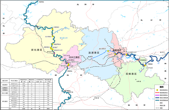 《规划》将娄底港划分为5大港区、娄星港区、新化港区、冷水江港区、双峰港区、涟源港区。各港区涵盖货运作业区、货运港点及客运、支持系统港点。全港共形成5个作业区(涟水娄底段3个、资水娄底段2个),6处货运港点。此外,娄底港发展将深挖涟水、资水、孙水、侧水等沿线旅游开发潜力,依托娄底优越的湿地公园、城市沿江风光带等旅游资源,大力发展水上旅游,共规划57处客运港点,包括8处旅游客运中心码头,43处旅游客运码头,6处旅游客运停靠点。