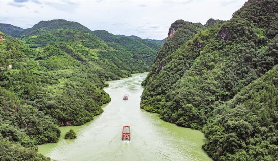 7月14日11时24分,随着一声长长的汽笛声响起,载满36个集装箱的“航电662号”“航电663号”船舶从遵义港余庆港区沙湾码头作业区起航,沿着乌江水路直奔重庆涪陵黄旗港,这标志着“贵州余庆—重庆涪陵”集装箱班轮成功开航,首开贵州水路集装箱运输干支联运的先河。
