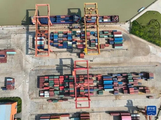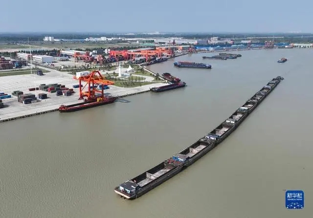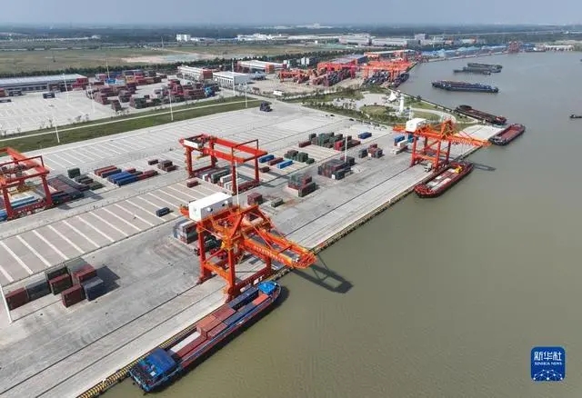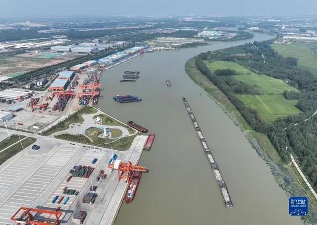 9月10日拍摄的运河宿迁港集装箱码头(无人机照片)。