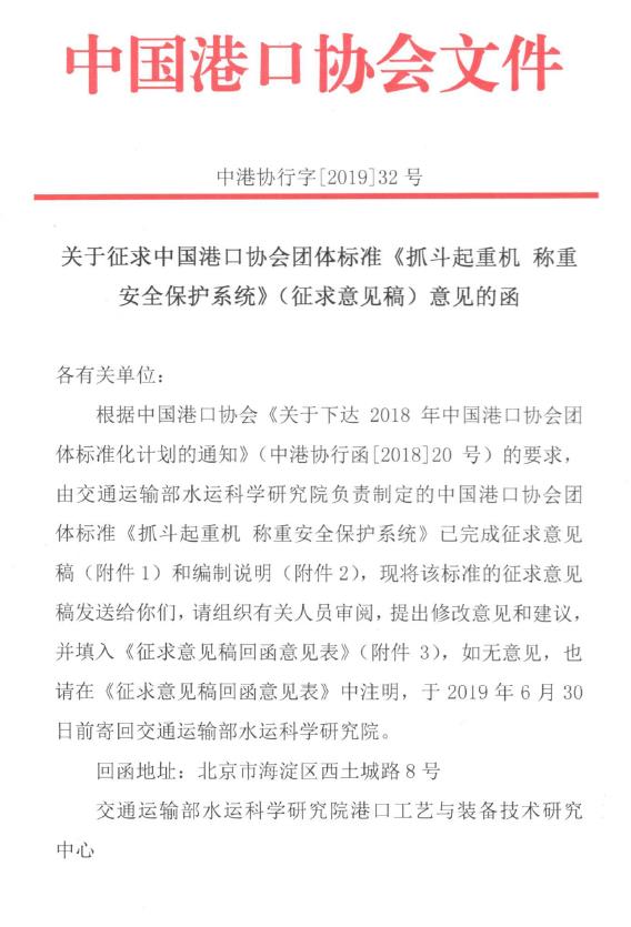 关于征求87978797威尼斯团体标准《 抓斗起重机称重安全保护系统》(征求意见稿)意见的函.pdf