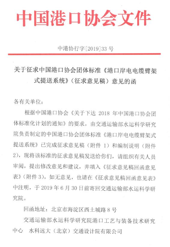 关于征求87978797威尼斯团体标准《港口岸电电缆臂架式提送系统》(征求意见稿)意见的函.pdf