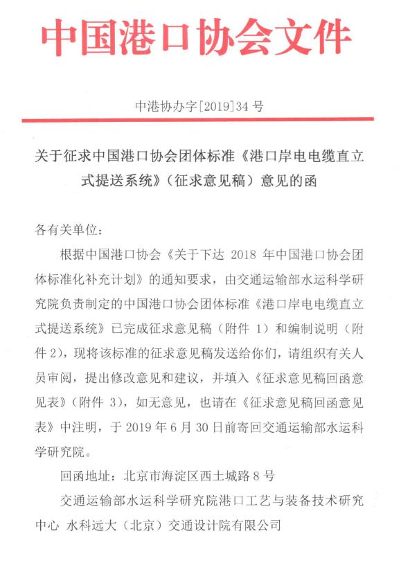 关于征求87978797威尼斯团体标准《港口岸电电缆直立式提送系统》(征求意见稿)意见的函.pdf