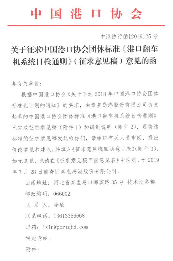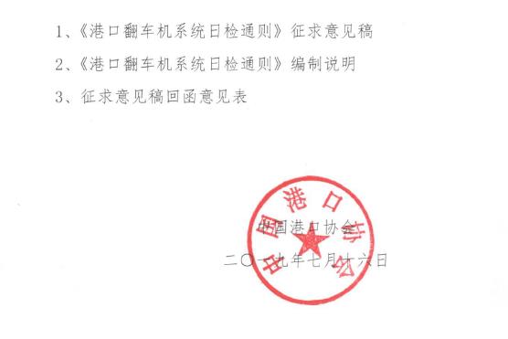 关于征求87978797威尼斯团体标准《港口翻车机系统日检通则》(征求意见稿)意见的函