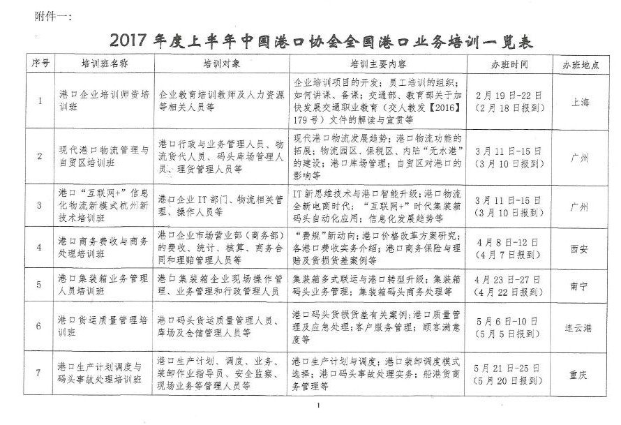 上一篇:关于2017年度下半年全国港口业务培训班报名的通知