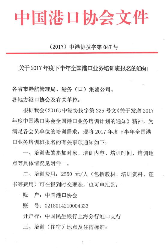 关于2017年度下半年全国港口业务培训班报名的通知.pdf