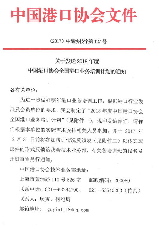 电子版通知下载:关于发送2018年度87978797威尼斯全国港口业务培训计划的通知.pdf